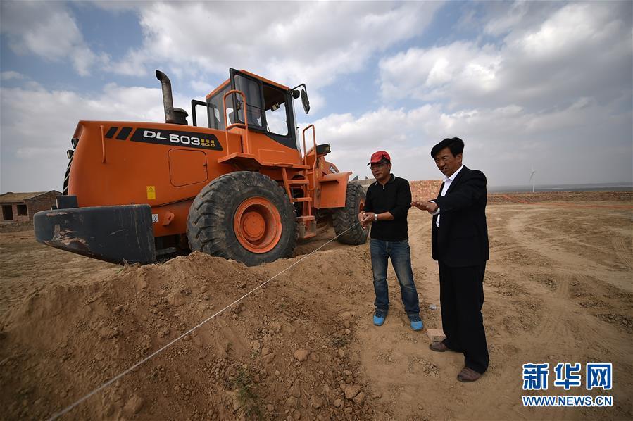 2017年10月20日,在宁夏吴忠市盐池县曾记畔村,十九大代表、村党支部书记朱玉国(右)在工地查看村饲料加工厂的建设情况。初心,穿越时空,永志不忘。 使命,接续担当,催人奋进。 “为中国人民谋幸福,为中华民族谋复兴”,一个走过近百年历程的世界第一大党,在其第十九次全国代表大会上如此宣誓她的初心和使命。岁月磨砺,党心民心,始终心心相印。当拥有8900多万党员的党始终把人民置于最高位置,始终把人民对美好生活的向往作为奋斗目标,始终同人民想在一起、干在一起,这个党领导13亿多人民决胜全面建成小康社会、建设新时代中国特色社会主义的事业必将取得胜利!中华民族伟大复兴的中国梦必将实现!新华社记者 李然 摄