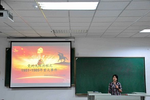 此次活动以党史时间轴的形式进行,按时间顺序回顾了中国共产党诞生、发展、成熟的过程,通过演示ppt学习了我党自1921年成立以来的光辉历史。在党从建立之初到带领全国人民走具有中国特色社会主义道路的曲折历史中,我们感受到了八年抗日战争时华夏儿女不屈的脊梁,不朽的民族精神;新中国的成立,是中国共产党对固有制度的突破,中国人民从此成为自己的主人;国内战争的爆发,更让我们体会到了一个有绝对代表性的政党对整个国家以及民族对内稳定、对外和平的重要性。对社会主义道路漫长的探索,中国人民经历过“三大改造”后生活的改善,经历过因经验不足所误入的“大跃进”及“人民公社化运动”,更体味过十年“文化大革命”的浩劫,探索自然有得有失,但在更大程度上,这一系列的探索使得中国共产党成长的更加迅速,更加有凝聚力,更推动了中华民族的发展与进步。十一届三中全会是我党及全国人民所面临的具有深远意义的转折点,从此我国进入对建设中国特色社会主义道路的探索阶段,三十多年的改革开放,在与各国的政治较量中,我们沉着应对;在经济全球化的浪潮中,我们敢于创新;在军事打击与威胁中,我们不畏艰险,立志攻破。这就是中国共产党带领下的中国,这就是现在的中国——跻身于世界强国之林。