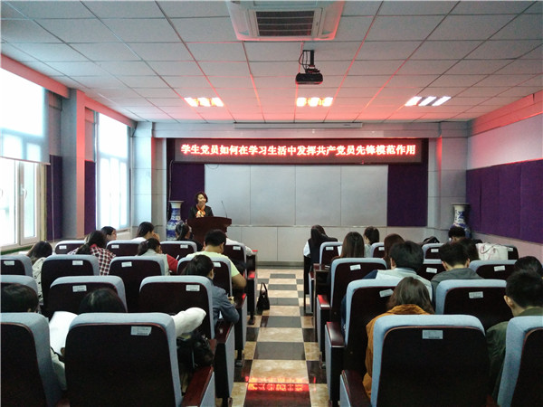 三楼报告厅开展了以“学生党员如何在学校生活中发挥共产党员先锋模范作用”为主题的党课学习。主讲人为肉视频