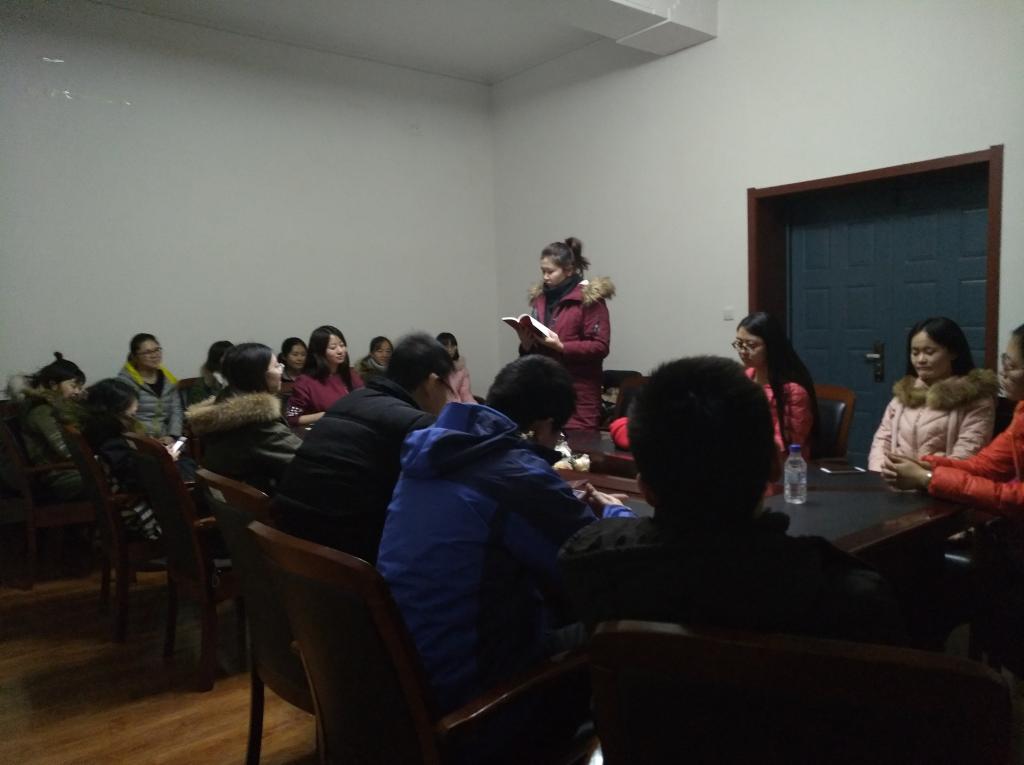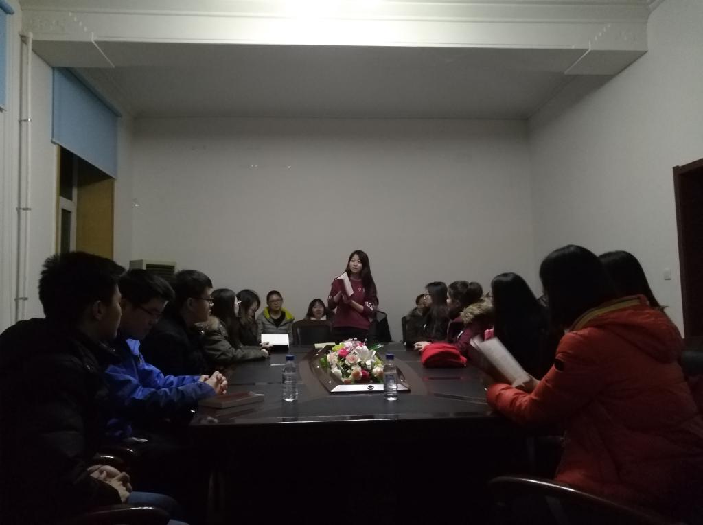 1229下午,在2014级党支部的组织下,于肉视频 三楼会议室开展了以“学习十九大报告”为目的的党日活动。2014级党组织委员由婷婷出席并主持了本次会议,2014级全体党员积极参与了此次党日活动。