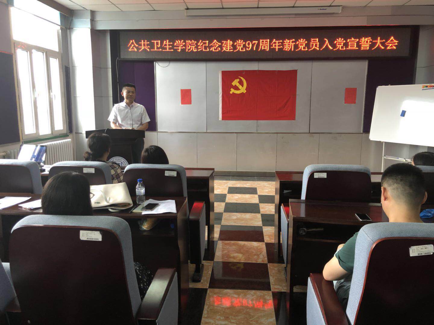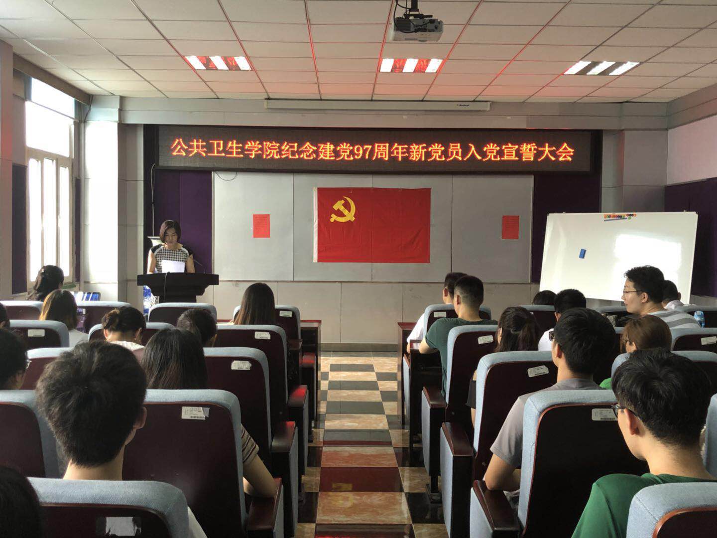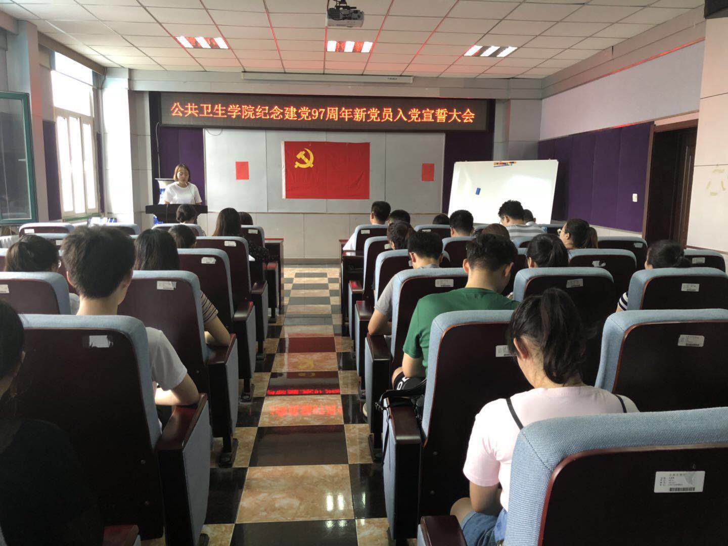 为坚定党员理想信念,加强党性修养,75日中午,肉视频 党委在学院办公楼三楼报告厅隆重召开“庆祝中国共产党建党97周年新党员入党宣誓大会”,肉视频 党委书记赵国利、党委副书记兼副院长、纪委书记刘丽、党委办公室主任曲超、全体学生支部书记及所有新发展的党员参加了会议。会议由刘丽副书记主持。