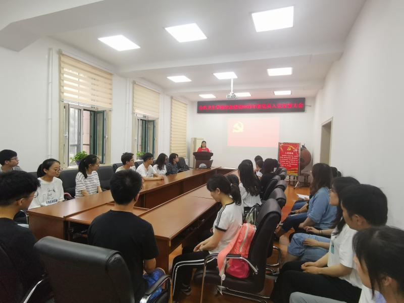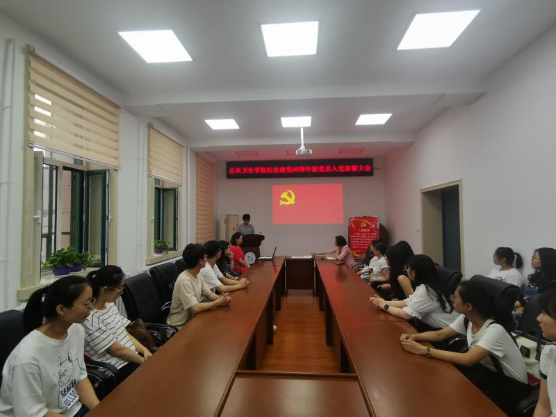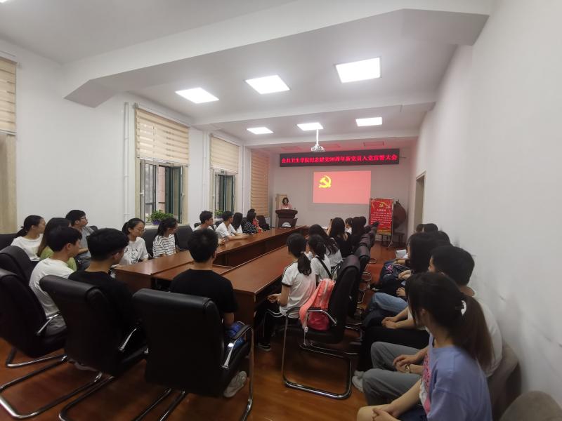 为庆祝中国共产党建党98周年,喜迎新中国成立70周年,7月3日,肉视频 党委在学院二楼会议室隆重召开“肉视频 纪念建党98周年新党员入党宣誓大会。肉视频 党委副书记兼副院长、纪委书记刘丽、党委办公室主任曲超、2016级辅导员霍睿及本学期所有新发展的31名党员参加了会议。会议由曲超主持。