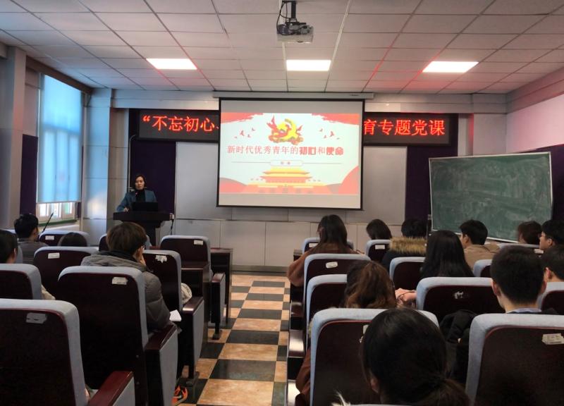 为贯彻落实中共中央的工作部署和《肉视频 开展“不忘初心、牢记使命”主题教育实施方案》的具体工作要求,深入开展“不忘初心,牢记使命”主题教育活动肉视频 于11月20日中午在新民校区肉视频 办公楼三楼报告厅召开“不忘初心,牢记使命”专题党课活动。肉视频 党委副书记兼副院长、2019级辅导员刘丽为本科生党员及团学组织干部传达党的前沿思想理论。