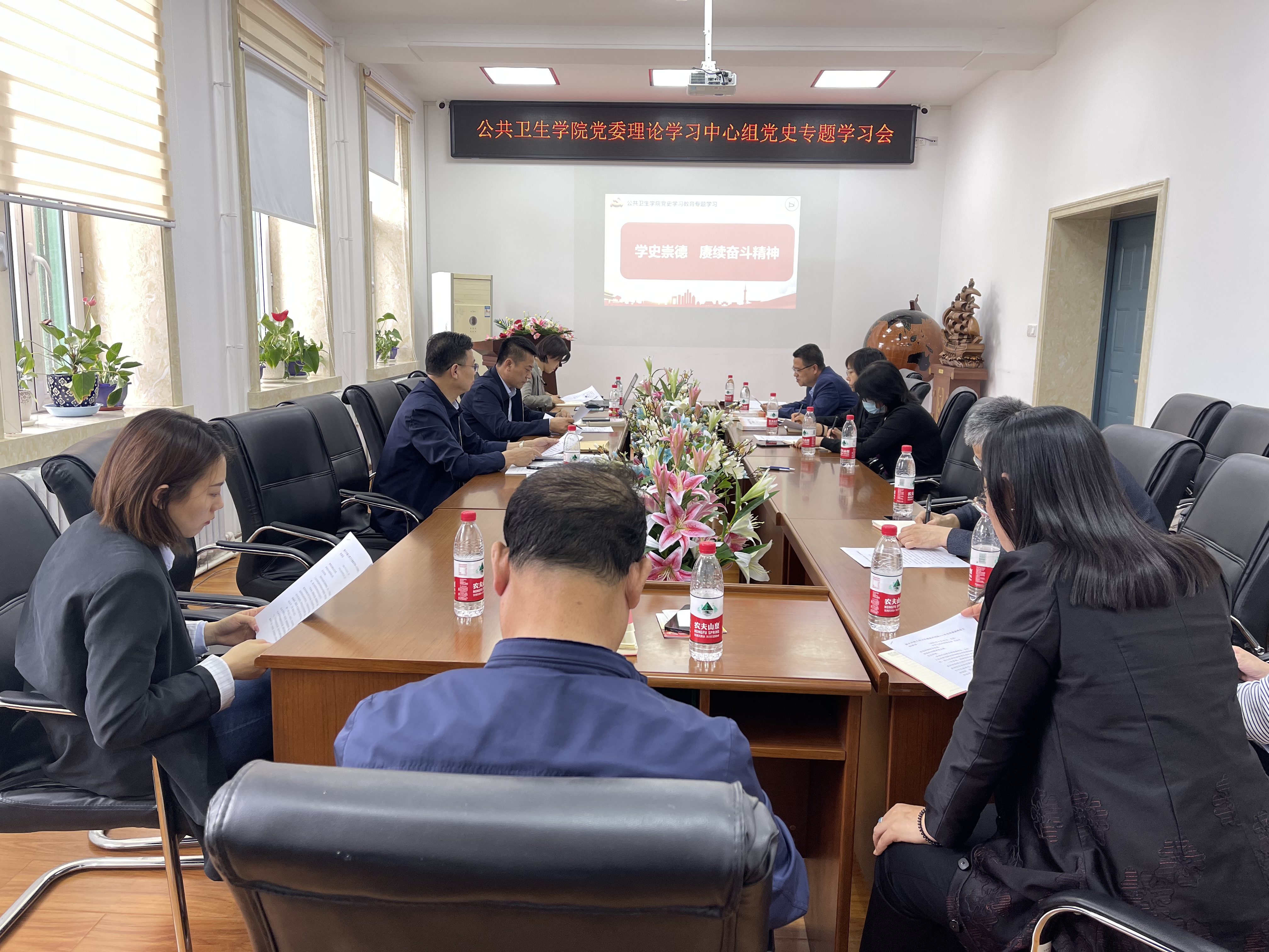 会上,赵国利书记带领大家回顾改革开放时期的历史于亮书记围绕“学史崇德 赓续奋斗”这一主题,为大家带来了一场生动的党课。最后由魏国志副院长带领大家学习“习近平主席在全球健康峰会上的讲话--携手共建人类卫生健康共同体”。与会人员围绕“学史崇德 赓续奋斗”主题,进行交流研讨。通过此次专题学习会议,各位党员纷纷表示:要从红色精神谱系中立心铸魂,从英雄人物和时代楷模身上体悟道德风范,就要明大德、守公德、严私德。作为党员,尤其需要将提高政治品德与精神境界放在自身建设的重要位置。明大德,就要像生死考验中立场坚定的革命先驱那样,认清大是大非、锤炼坚定党性;守公德,就要像孜孜不倦为民解难的优秀干部那样,以人民为中心、以天下为己任;严私德,就要像物质诱惑前严于律己的先锋模范那样,厚植良好家风、公事不掺私情。