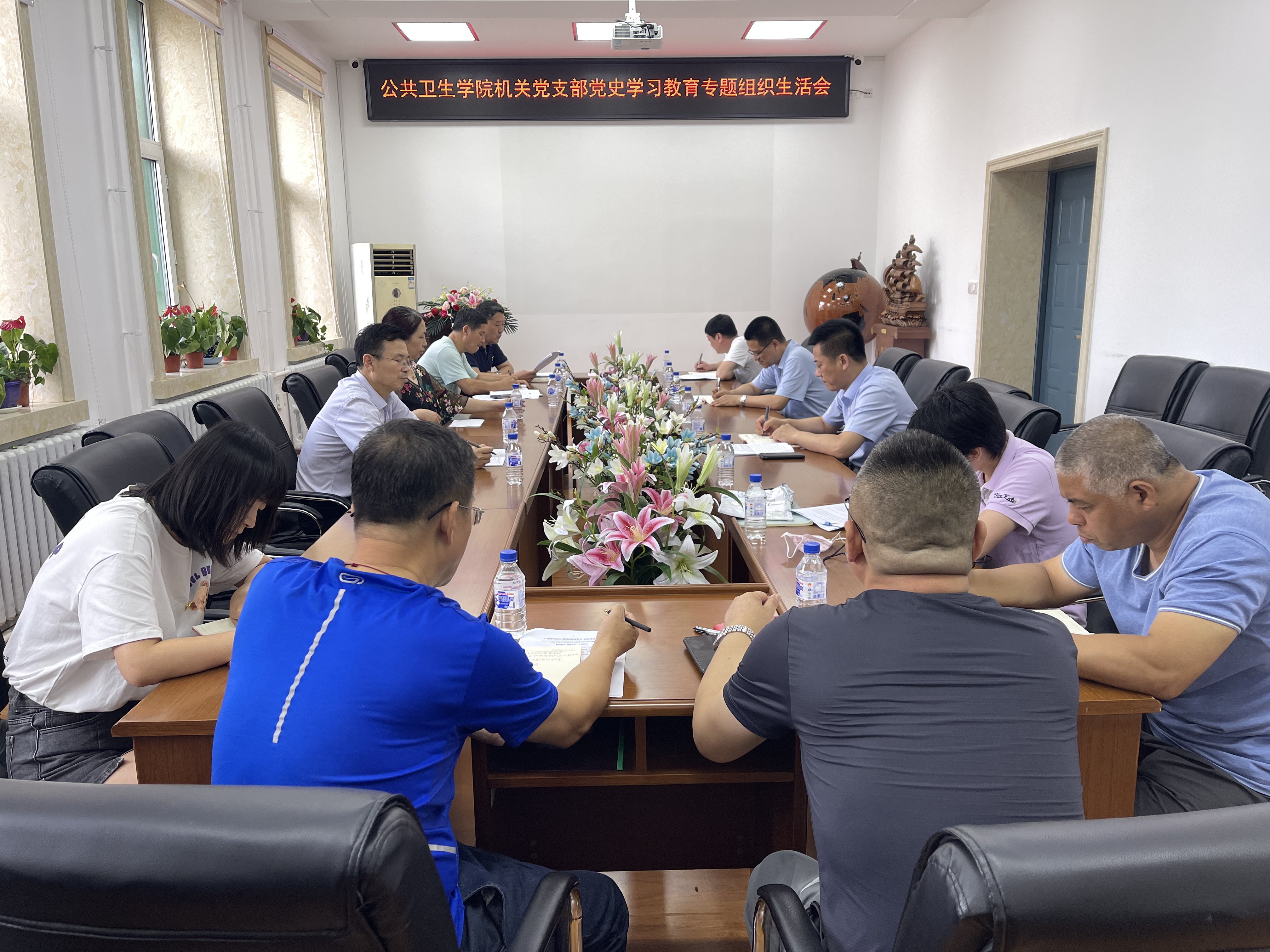 二楼会议室机关教工党支部召开党史学习教育专题组织生活会。参加会议的有机关支部全体党员和学校党史学习教育第10指导组的赵光军和吴哲同志。会议由机关党支部书记杨保华同志主持。