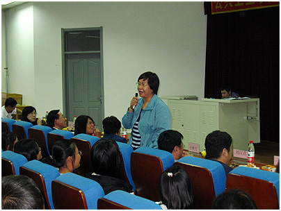 会议分两部分进行,在第一部分的启动仪式上,首先,于洗河传达了学校关于“名师班主任计划”的内容及学院的实施细则,然后包括研究生院副院长刘娅在内的七名“名师班主任”与2010级新生所在的班级一一见面。接着于洗河又传达了肉视频
