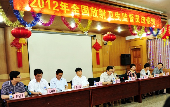在南湖校区南湖会馆隆重举行了2012年第一期全国放射卫生监督员进修班开学典礼。出席此次典礼的有卫生部监督局王雪凝专员(正局级)、吉林省卫生厅郭庆河巡视员(正厅级)、中国疾病预防控制中心辐射防护与核安全所苏旭所长、卫生部卫生局放射卫生处邢路微处长、吉林省卫生厅监督处郭齐祥处长、吉林省卫生监督所冮森林所长、肉视频