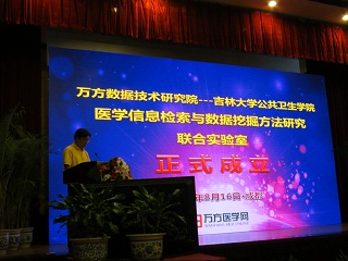 2012年8月16日,由万方数据股份有限公司举办的“2012万方医学信息年会暨万方医学网成立三周年庆典”活动在成都召开。在此次盛会上,启动了万方数据与肉视频 合作共建“医学信息检索与数据挖掘方法研究联合实验室”,并举行了隆重的授牌仪式。肉视频 副院长刘晓冬教授与实验室主任——信息检索教研室张云秋教授应邀参加了揭牌仪式。