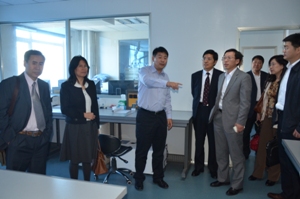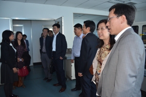 与会的领导和专家在省出入境检验检疫局领导的陪同下,参观和考察了省出入境检验检疫技术中心的实验室。