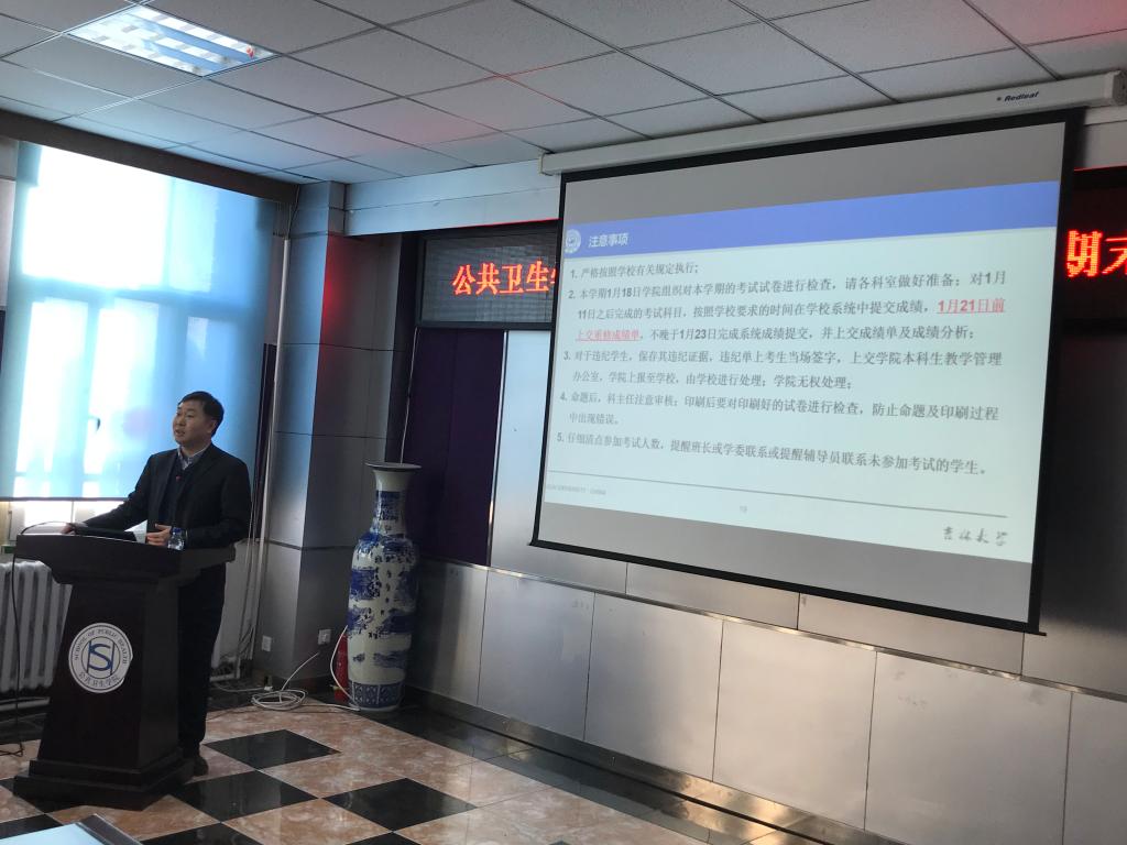 寇长贵副院长传达了学校有关期末考试会议精神,并对学院期末考试工作进行动员,明确考试试卷命题、试卷评阅、复核、成绩评定、成绩登录、试卷分析等工作要严格按照学校要求进行,考试结束时要填写《肉视频