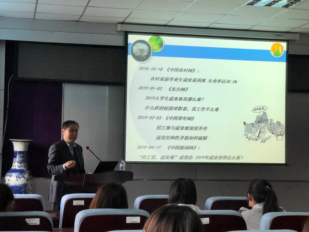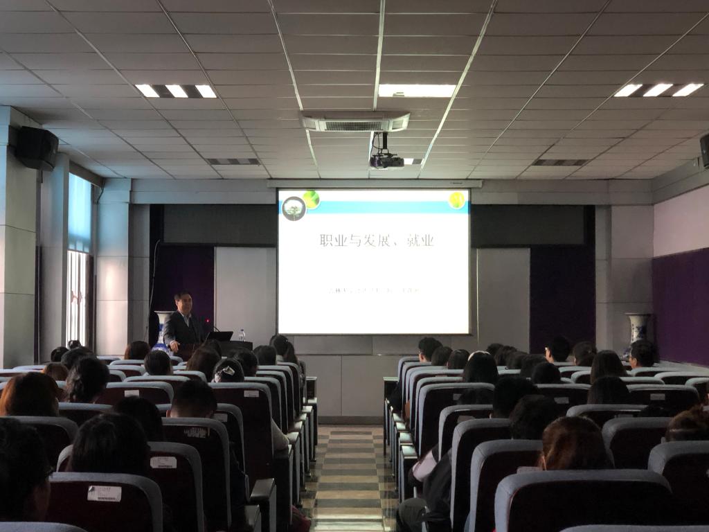 三楼报告厅为学院师生做“职业与发展、就业”的专题报告。