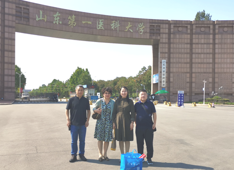 放射医学系主任金顺子教授带队,放射化学教研室主任石磊教授、国家卫健委放射生物学重点实验室副主任兼放射生物学教研室主任申延男副教授、辐射防护学教研室主任杨湘山副教授一行四人分别到山东第一医科大学放射学院和肉视频