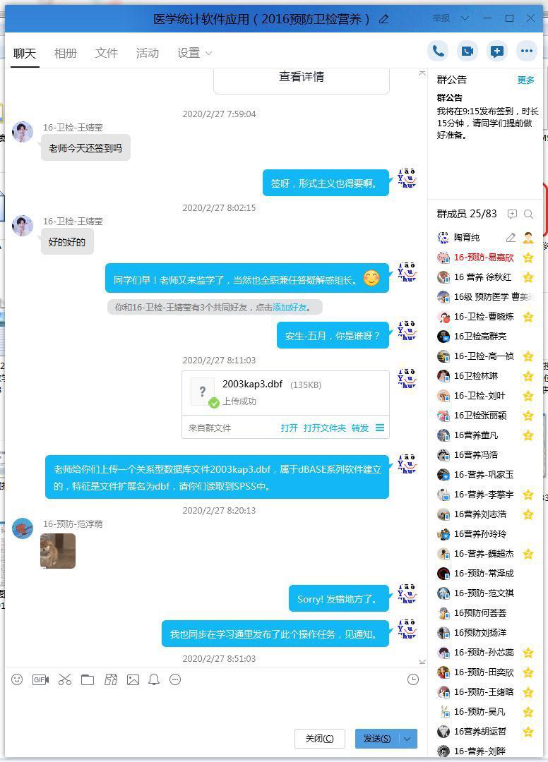 《医学统计软件应用》课程师生通过QQ群在线交流