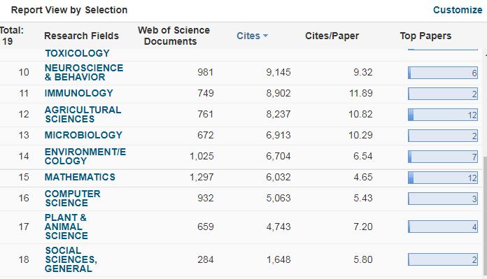 第18个进入ESI前1%的学科,本次ESI数据共统计了284 篇社会科学总论方面文章,总被引用1648次,平均被引次数5.8次。