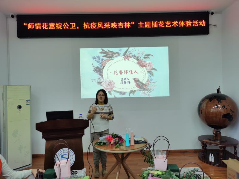 妇委会主任陈焱主持本次活动。活动邀请吉林省职业院校“双师型”教师,高级花卉园艺师刘春博老师,带领学院教师上了一堂生动美好、陶冶情操的插花花艺课。院长刘雅文教授、副书记刘丽参与了此次活动。