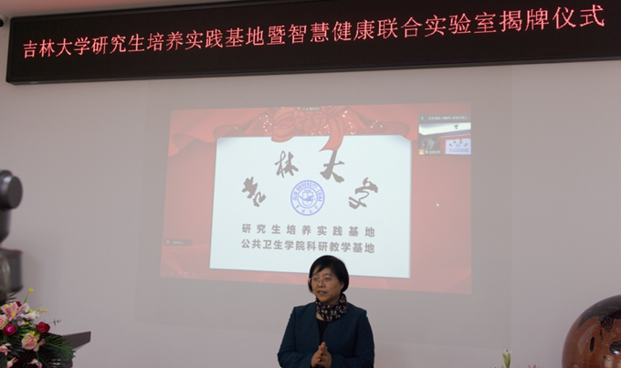 院长刘雅文、副院长刘晋宇、魏国志、副书记于亮、研究生专员于洗河以及医学信息学系曹锦丹、张云秋、王伟、孙丽等出席会议。双方以视频连线的方式参加揭牌仪式并致辞,市健研数管中心吴旭生同志主持仪式。