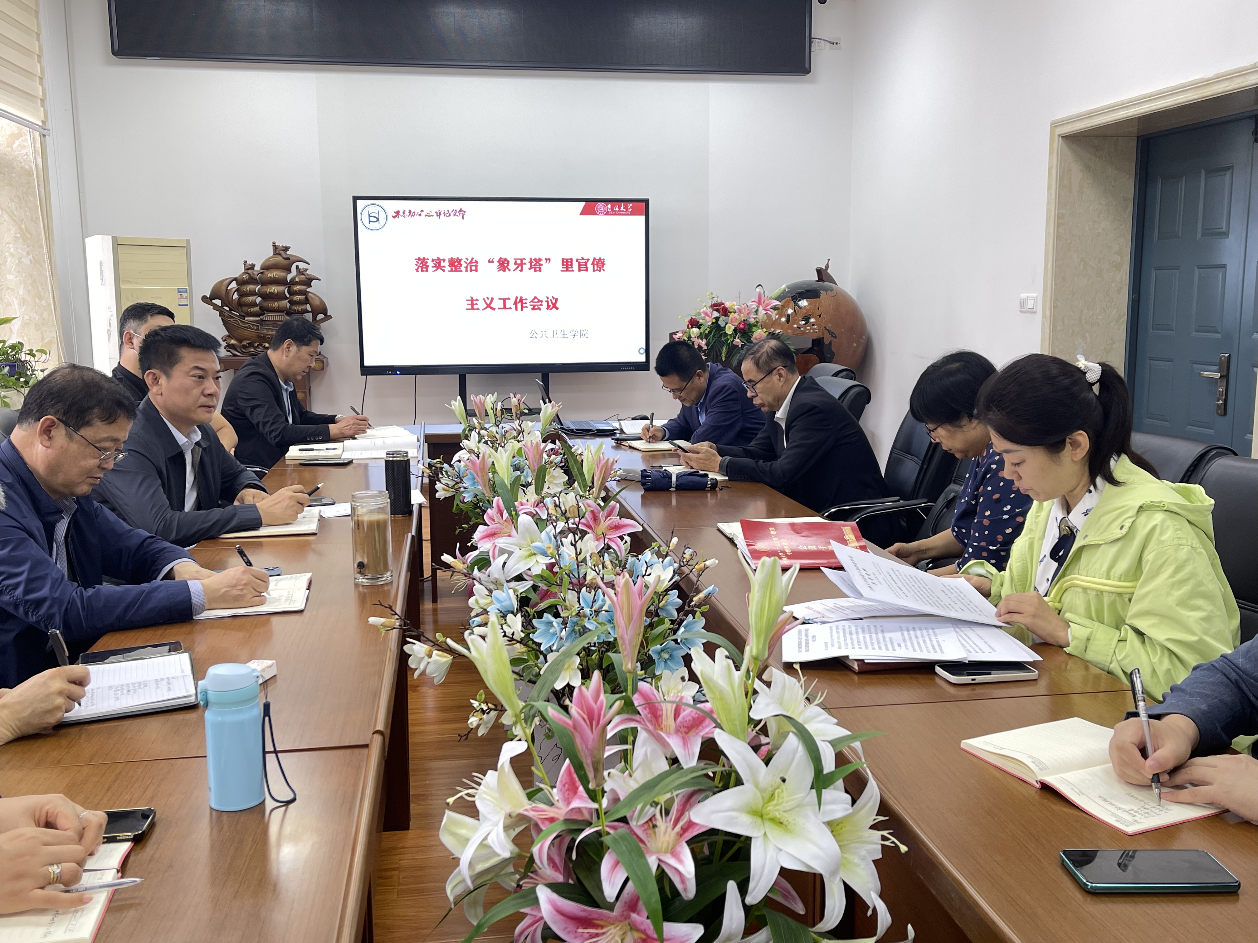 纪检监察机构关于整治“象牙塔”里官僚主义工作方案》,并带领全体参会人员学习了《习近平关于力戒形式主义官僚主义重要论述选编》及《晒一晒“象牙塔”里的那些官僚主义》文章。随后,于亮副书记传达了学校相关会议精神。