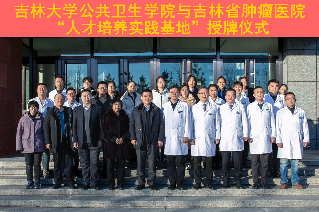 党委书记赵国利、院长刘雅文、副院长寇长贵、副院长王志成;吉林省肿瘤医院党委书记刘海峰、院长王茂楠、副院长刘刚、副院长陈忠民出席,双方相关科室负责人、在院实习公共卫生硕士研究生参加仪式。仪式由吉林省肿瘤医院院长王茂楠主持。