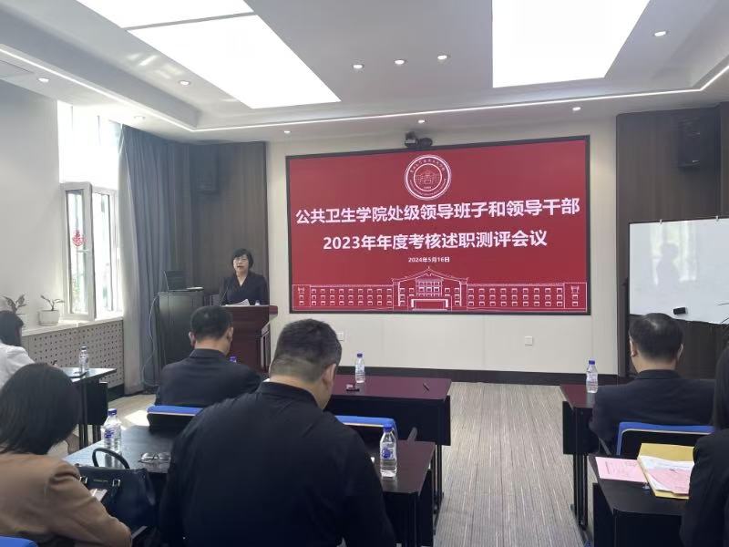 在学院三楼报告厅召开处级领导班子和领导干部2023年年度考核述职测评大会。学院全体教职工参加会议,会议由学院党委书记赵国利主持。