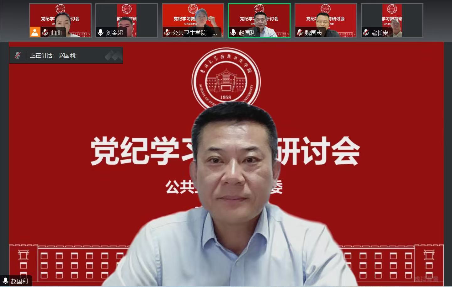 召开党纪学习教育研讨会,学院领导班子、党委委员参会。会议由党委书记赵国利主持。