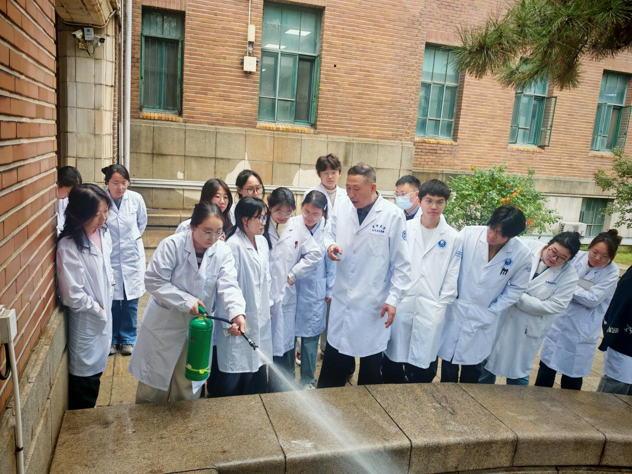 乔乙春副教授首先阐述了规范使用微生物实验室的必要性与重要意义,强调遵守实验室规章制度既是科研顺利开展的基础保障,也直接关系到每位实验人员的人身安全。郭媛媛副教授系统讲解了实验室使用流程,涵盖实验室准入、实验材料准备、菌种使用与申请、环境维护以及生物垃圾处理等关键环节。李勇老师结合实际案例,详细介绍了实验室常见安全隐患及应对策略,现场演示水基灭火器与灭火毯等消防设备的正确使用方法,切实增强了学生的应急处理能力。在培训的最后环节,李卓林老师带领学生进入实验室开展实地教学,细致讲解实验室功能布局与实验过程中需特别注意的安全事项,进一步加深了学生对安全规范和操作要点的理解。