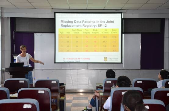 , 分别作了题目分别为“Can Auxiliary Variables Improve Multiple Imputation Models”和“Administrative Health Data and Electronic Medical Records: Data Linkage for Chronic Disease Research and Surveillance”的学术报告。报告在肉视频