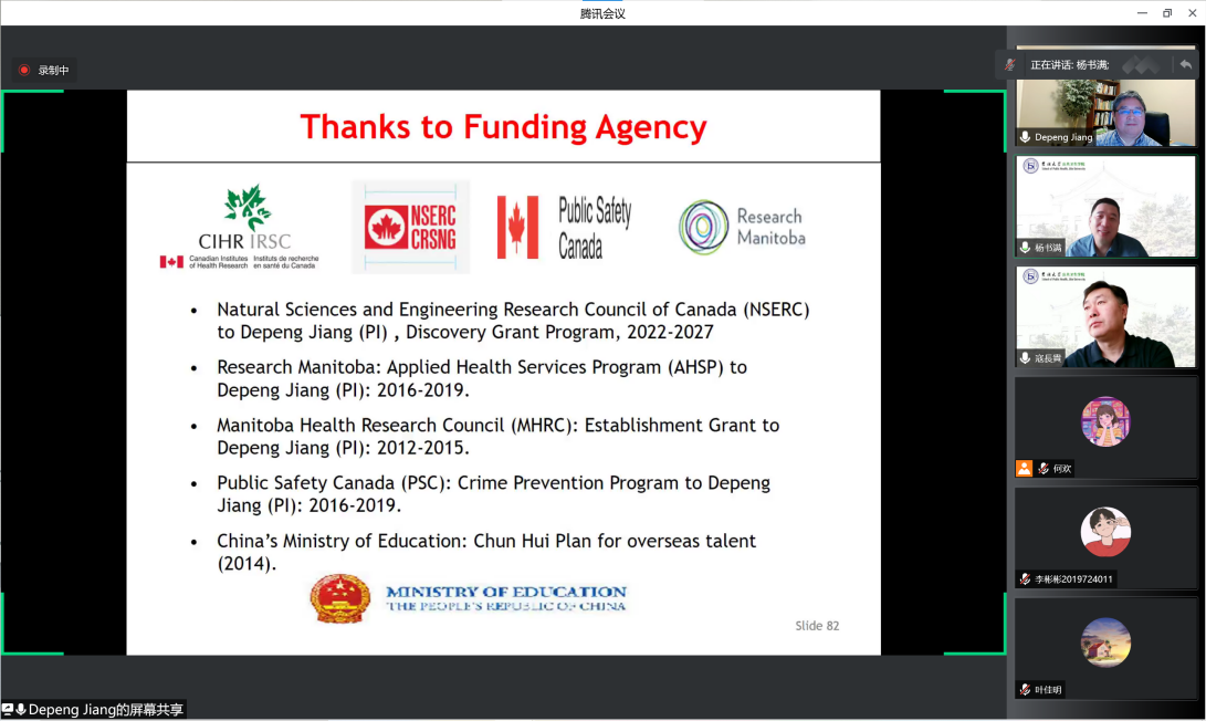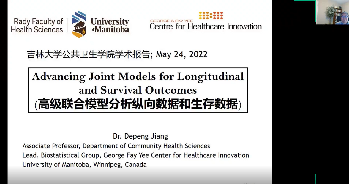 师生的统计分析能力,促进学院国际交流,应学院邀请,加拿大曼尼托巴大学公共卫生学系蒋德鹏教授于2022年5月24日线上做了题目为《高级联合模型分析纵向数据和生存数据》的学术讲座。肉视频
