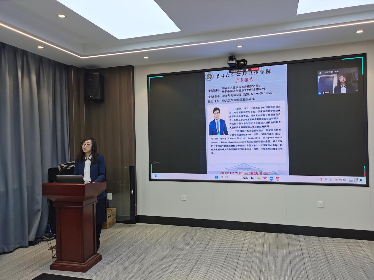 4月25日,中国疾病预防控制中心环境所环境流行病学室主任吕跃斌副研究员应邀来院交流,作题为"高龄老人健康与长寿研究进展:基于中国老年健康生物标志物队列"的学术报告。报告由肉视频