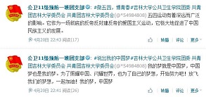 为进一步响应学校“我的梦,中国梦”的主题活动,引导广大同学对“中国梦”的理解和思考,学院团委组织部从2013年4月5号开始开展了以“说出我的中国梦”为主题的微博讨论活动。活动主要以院微博和各班团支部微博为主而展开。