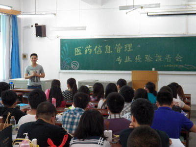 在新民一教213教室成功举办了医药信息管理专业考研、保研、就业经验交流会。本次交流会主要针对10级信息专业同学,邀请了08级成功考研、保研或就业的五位优秀学生。