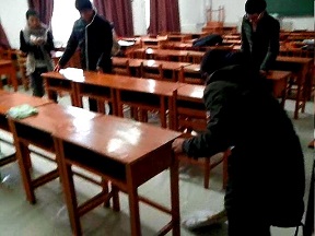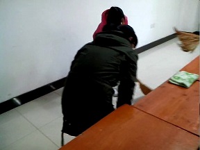 医药信息与管理二班的全体同学在团支书的带领下,于11月28日中午一点开始了打扫李四光楼104教室活动。