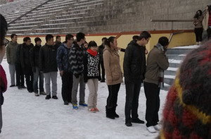 为丰富我校学生的课余生活,增强青年学生的沟通、互助能力,培养学生积极进取的人生态度,加强各校区、院系之间的交流,我校大学生素质拓展中心于2013年12月8日上午八点四十五分,在中心校区体育场举办“肉视频