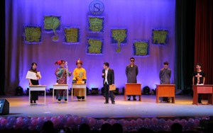 伴随着动感十足的荧光舞,晚会拉开了它神秘的面纱。主持人们青春洋溢的开场迅速带动起全场的气氛,《隐形的翅膀》、《爱》这一首首耳熟能详的歌曲,再配合着演员们大方优美的手语更是将观众带入佳境。紧接着,相声《大学生活》用它诙谐的语言调侃着大学生活着实让大家感同身受。五四青春诗朗诵,那一句句掷地有声的话语,一声声慷慨激昂的宣言,毫无疑问地激发了同学们最原始的青春热血。之后,时尚流行的歌曲和激情热辣的舞蹈,更是把晚会一次又一次的推向高潮。最令观众兴奋的莫过于抽奖环节,红歌接唱,大家积极踊跃的参加,拉近了台上台下的距离。随着晚会的持续升温,一个个各具特色的的节目轮番登场,舒缓轻柔的《你的眼神》、异域风情的《印度舞》、古声古韵的《菩萨蛮》、唯美动人的《惊鸿舞》等都为观众留下了深刻的印象。《军训回忆》等舞台剧演员们释放天性的表演引得观众们一阵又一阵的的捧腹大笑,赢得老师和同学们的一致好评。美好的时光总是短暂的,在《倔强》的歌声里晚会圆满落幕。