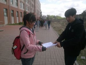 此次宣传活动共分两个部分。首先是由男生负责悬挂宣传条幅,;与此同时另一些同学负责发放关于红十的有关知识和精神的传单,意在宣传红十精神,并向同学们认真讲解世界红十字日的由来和红十精神,增进同学们对其的了解,肉视频
