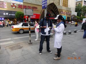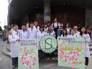 在活动前期同学们做了充分的宣传工作,利用课余时间在各大教室宣讲五四精神和核心价值观,突出德行与感恩的重要,更有2012级放射一班班主任刘老师对本次活动的寄语。随后,便开始本次活动,其主要是以感恩母亲为主,让路人写下他们对母亲最想说的话和内心最美好的愿景,同时赠送班级自制的日常急救知识手册。炎炎烈日下,同学们身着白大褂,拿着精心准备的展板以及各种材料,一路欢声笑语来到了桂林路。整个过程中,每位同学都积极而真诚地向路人介绍活动的目的及意义,并邀请路人在便签上写下对妈妈的祝福,也会简略地讲述一些急救知识。在这些小小的纸片之中,流淌着满满的感动:有稚嫩的小孩写着歪歪斜斜的字表达纯真的祝福,也有中年母亲情到深处的丝丝动容,更有外国友人对远方母亲的深深寄语。活动接近尾声,更吸引了两位吉林艺术学院的学生的眼球,并且对本次活动做了相关采访。最后,全体同学合影留念。