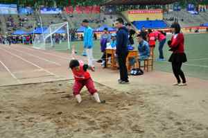 2013级信息一班的徐峥同学,在本次女子跳远比赛中获得了全校第四的好成绩。