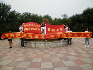 团委组织、绿野协会参加的“情系伊通母亲河,环保理念入人心”美丽中国实践团作为环保维护践行团,在长春市伊通河沿岸实施了本次社会实践活动第二部分—清理伊通河垃圾,并于文化广场举办母亲河水义卖活动。