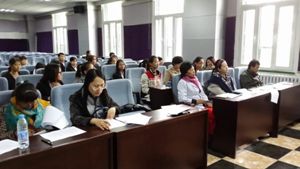 会议伊始,刘丽书记介绍了此次评选大会的规则,本次评选评委团由刘丽书记,王伟教授,金顺子教授,杨淑娟教授,学生工作办公室吴晓辉主任,苏国范老师,郭倩君老师,学院学生会主席付晓燕及副主席团学生代表,各年级班级的优秀学生代表,学生党支部优秀党员代表组成。刘丽书记宣读了《肉视频