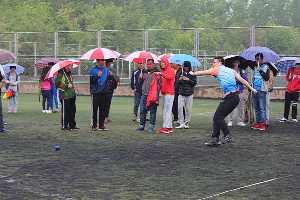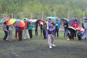 本场比赛运动员分为两组,上午9时30分,参加男子学生组胶球掷远决赛的运动员前往检录处检录,之后统一在工作人员的安排下带到比赛场地等待上场。尽管天气阴冷且小雨霖霖,肉视频