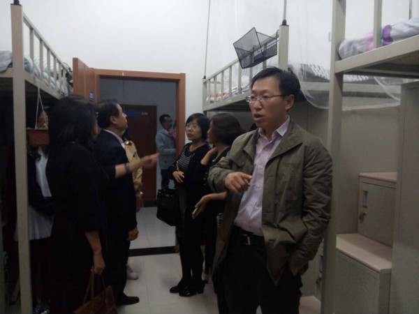 院长李娟,学院党委书记钟绍峰,学院副院长于洗河、副院长刘雅文,党委副书记兼副院长兼2014级辅导员刘丽、2012级辅导员郭倩君老师与2015级辅导员苏国范老师集体来到中心校区,于北苑二公寓、南苑二公寓对2015级肉视频