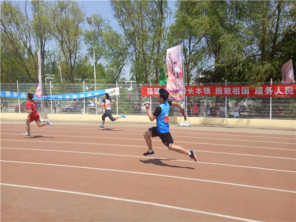 代表队在第三组出场,于楚洋同学为第一棒,何双双同学为第二棒,彭曹帅同学为第三棒,王兆丰同学为第四棒。发令枪响,第一棒运动员如离弦的箭一般,冲向正在焦急等待的接棒运动员,并在没有减速的情况下完成了棒的交接,后面几棒运动员以更快的速度跑向接棒运动员,为队友赢得更大的的优势。在整个过程中,队员们都拼尽全力,没有丝毫懈怠,不断地被对手超越,又不断地反超对手,与此同时,队员们彼此之间更是配合默契,没有在交接棒的过程中出现失误,以几乎完美的状态跑到终点,最终以49.94秒,小组第三,总第十四的好成绩成功晋级决赛。