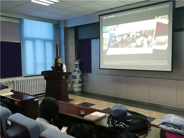 伴随着共青团团歌《光荣啊!中国共青团》的悠扬旋律,主题团课正式拉开了序幕。首先,主持人概述了中国共青团成立至今95年中取得的丰功伟绩,并为同学们简述了马克思主义中国化的由来和定义,成功将同学们引入了热烈的学习氛围之中。