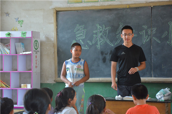 河北唐县社会实践小分队“寻根之旅”的第四天,也是志愿者们在葛公村希望小学开展支教活动的第二天。经过前一天有趣地学习和愉快地相处,孩子们的学习热情和积极性都空前高涨。距离上课还有十多分钟,教室里已然座无虚席。50余名小学生端端正正地坐在自己的座位上,一个个都翘首期盼,亮晶晶的大眼睛里闪烁的是满满的求知欲。在这样良好的氛围下,伴随着清晨的第一缕阳光,一场别开生面的“急救知识小课堂”正式开课了。