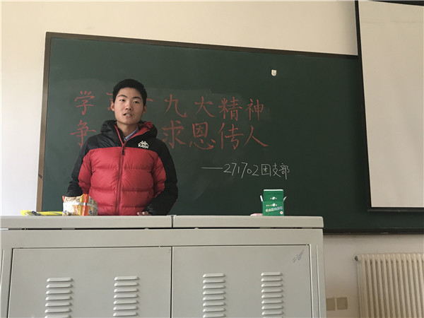 111日上午,271702团支部在李四光教学楼举办了“学习十九大精神,争做白求恩传人”主题团日活动,此次团日活动在各班委和全体同学的共同配合下取得了圆满的成功。