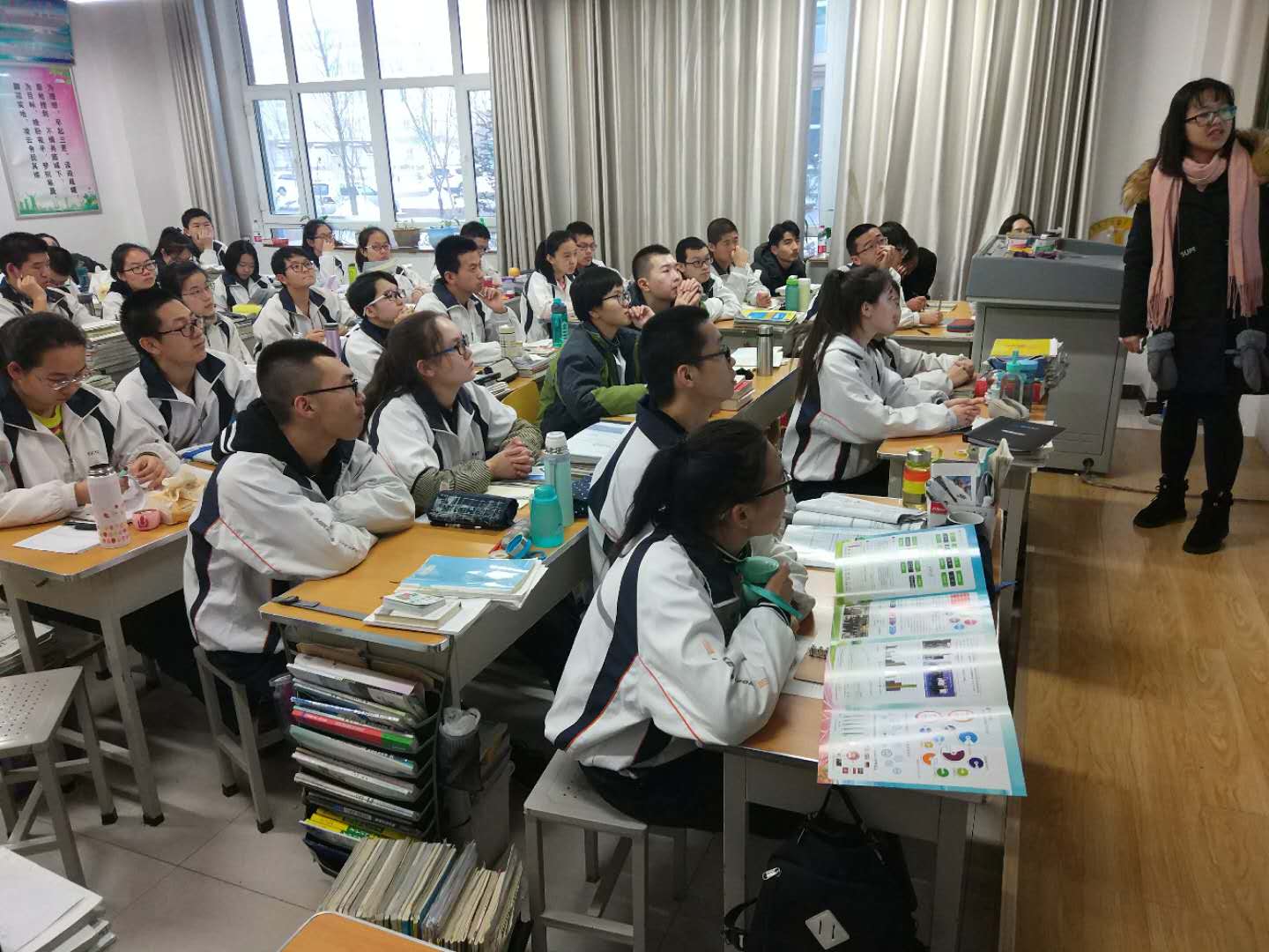 1月29日下午,招生宣传团第一小分队的志愿者们走进了新疆维吾尔自治区阜康第一中学,展开了面向高三学生的宣讲。宣讲伊始,志愿者们结合PPT向高三学生详细介绍了肉视频