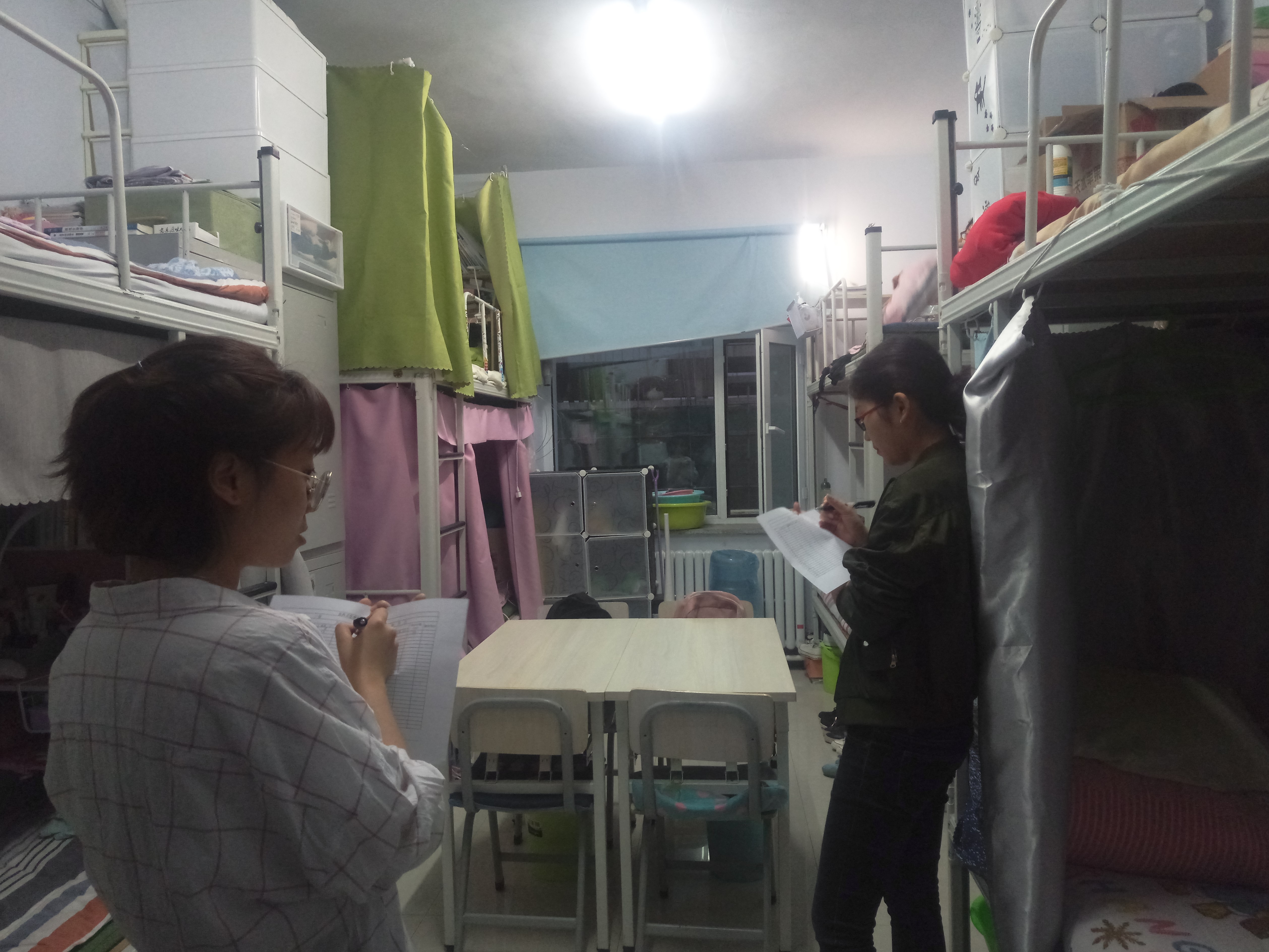 本次查寝中,学生第一工作比较整洁,但有些寝室有气味,个别寝室未留人。第三公寓的情况普遍良好,桌面和地面大多数都收拾得比较干净,可见同学平时有着较好的生活习惯,但有个别寝室仍存在异味问题,部分寝室床铺东西摆放较乱,悬挂物较多,整体不佳。学生第四公寓总体表现良好,较之前有进步,但有部分寝室书籍摆放较乱。三个宿舍楼均未见违章电器。