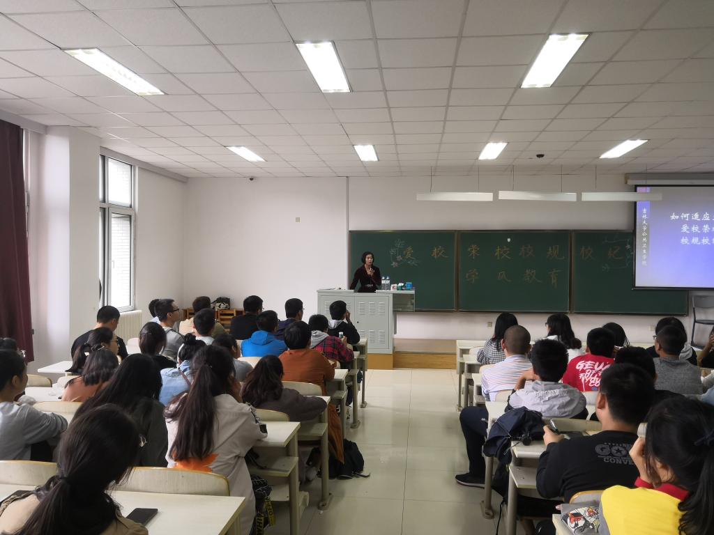 的校史,回顾了我校的光辉岁月。紧接着,分别从学习和生活两方面,向同学们讲解了大学与高中的区别。同时,谈到了一些未来大学生活中可能会遇到的问题,以及对应的解决方案。随后,刘书记对学校的规章制度、以及考试纪律做了具体阐述,介绍了学风在大学期间的重要性,同时为学生们敲响警钟,告诫学生们要继续发扬高考时的精神,潜心学习,发奋图强,莫负少年时。从现场同学们的眼神中可以看出,大家在认真的规划自己未来的五年生活,给自己制定着学习的目标,同时也对自己的行为有了更高的要求,努力地向着年少的梦想奋斗。