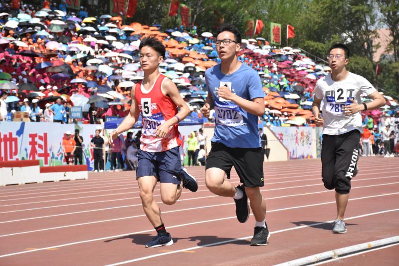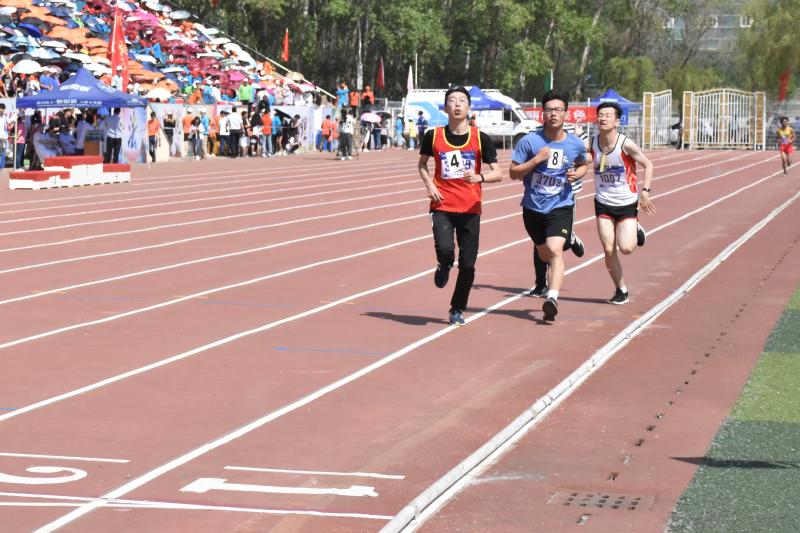 上午9时25分,逐渐火辣的阳光为体育场笼罩上一层热气。在志愿者的帮助下,运动员完成检录、进入跑道。伴随着发令枪响,运动员们如离弦之箭一般向前冲锋。比赛起始阶段,各位选手都保存实力,不贪图一时的名次。800米后,运动员们你追我赶,不分上下,不到最后冲刺的一刻也不知道谁胜谁负。周围的热气与身体散发的热气开始慢慢融为一体,参赛选手们的呼吸也开始变得急促不均,豆大的汗珠不断地穿越脸颊,在塑胶跑道上留下一个个小小的豆印。他不慌不忙,调整步调,逐渐提速。还有500米、200米……终点线越来越近;一个、两个……名次不断提前。最终,他冲过了终点线,脸上露出了欣喜的笑容。最终,肉视频