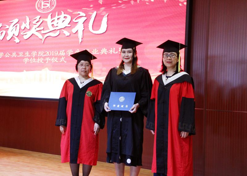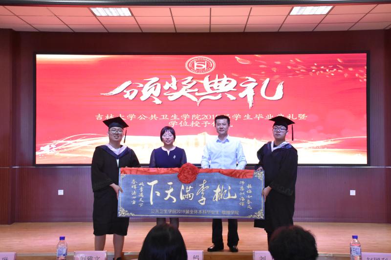 上午9时,典礼在庄严的国歌声中拉开帷幕。由副院长寇长贵、副院长于洗河分别宣读2019届本科毕业生名单、优秀本科毕业生名单及第二届全国大学生公共卫生综合技能大赛获奖名单,2019届博士、硕士毕业生名单及优秀研究生毕业生名单。由院领导分别为优秀毕业生代表及第二届全国大学生公共卫生综合技能大赛获奖同学颁发荣誉证书。随后,由李娟教授、刘娅教授、刘雅文教授、叶琳教授为毕业生颁发毕业证书并授予学位。