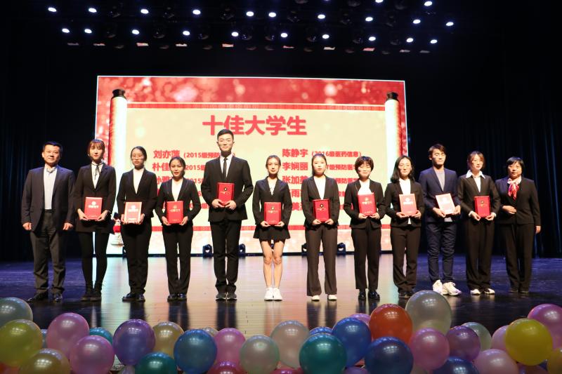 2019年度“优秀班级”、“自立自强大学生”、“十佳大学生”称号的代表及同学依次上台领取证书,并与各位领导合影留念。颁奖典礼的最后,刘雅文院长发表了精彩的讲话,激励新生要继往开来、脚踏实地、锐意进取,取得更加优异的成绩,成为更加优秀的公卫学子。